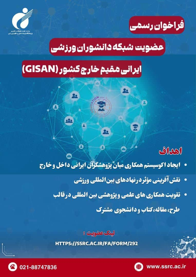 بدینوسیله به استحضار میرساند؛ در راستای تقویت تعاملات علمی بینالمللی و ایجاد ارتباط مؤثر میان پژوهشگران علوم ورزشی مقیم داخل و خارج از کشور و بهرهگیری از ظرفیتهای علمی نخبگان و اساتید سراسر جهان، پژوهشگاه تربیت بدنی و علوم ورزشی وزارت علوم، تحقیقات و فناوری در نظر دارد تا با راهاندازی شبکه دانشوران ورزشی ایرانی مقیم خارج کشور در این راستا اقدام کرده و گامی مؤثر بردارد.